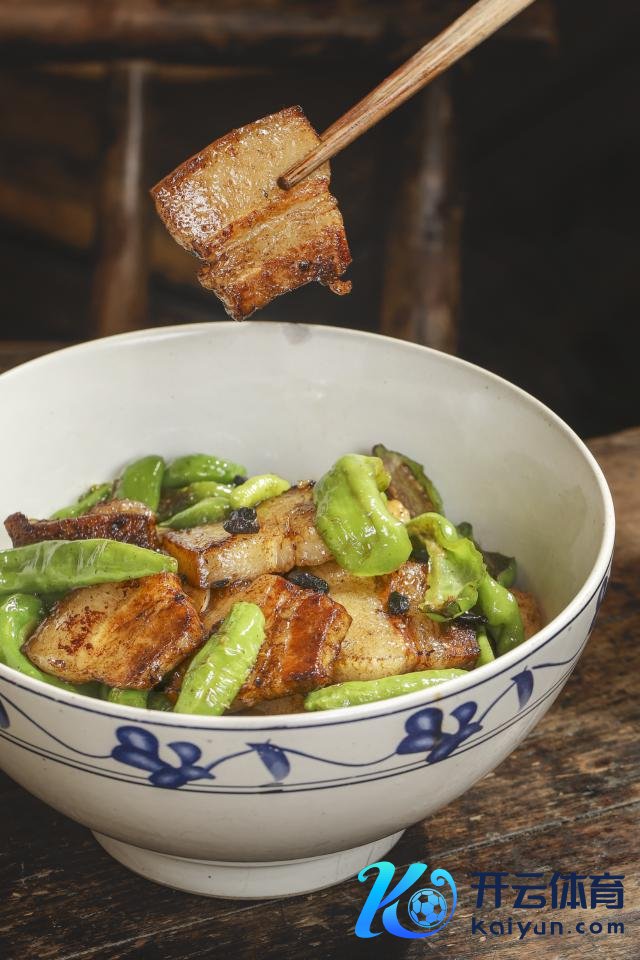 在莫得雪柜的年代,制作腊肉是南边各地都会使用的肉类保存思气,这种习气也保持于今。每到冬至前后,湖南的家家户户都少不了奔忙起来,尤其是湘西,杀完年猪之后全家老小皆上阵,熏出一条条的上好腊肉。湘西黑猪和黔邵花猪,是这片山林里养出的"畅通健将",肉质紧致,肥肉未几,是作念腊肉的"种子选手"。精选精肥参半的五花肉,盐渍再熏烘个半月之后,肥肉部分变得彻亮透明,切薄片爆炒极香。腊过的内脏,如猪大肠、猪心、猪肺,流程头气和盐分浸礼之后也夺胎换骨、多了层深意。