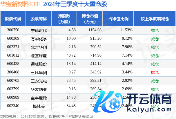 华宝新材料ETF为指数型-股票基金,凭据最新一期基金季报清晰,该基金财富建树:股票占净值比98.73%,无债券类财富,现款占净值比1.47%。基金十大重仓股如下: