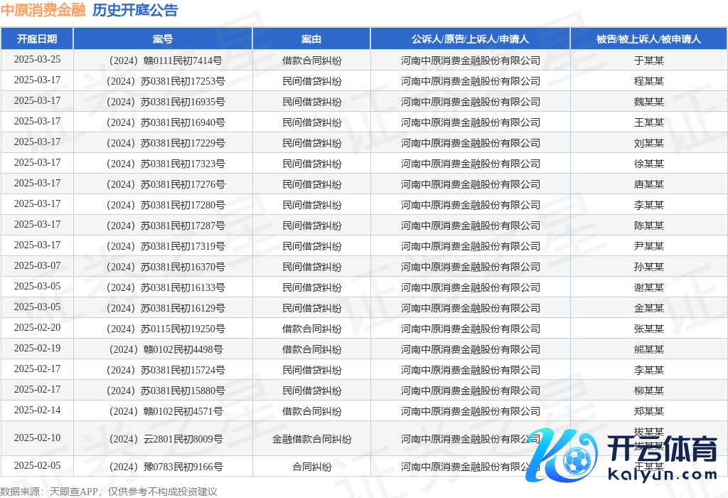 本站音尘,凭据天眼查APP潜入,近日公布了一则河南华夏消耗金融股份有限公司看成原告/上诉东谈主的开庭公告,详备本质如下: