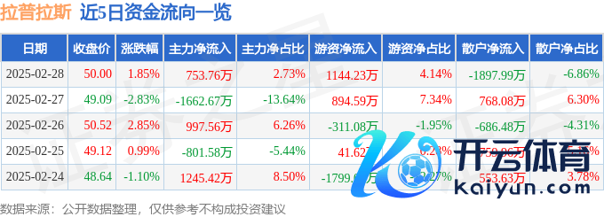 本站音问,适度2025年2月28日收盘,拉普拉斯(688726)报收于50.0元,高涨1.85%欧洲杯体育,换手率16.16%,成交量5.45万手,成交额2.77亿元。