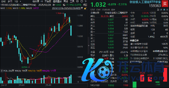 热门ETF方面,全市集首只的创业板东说念主工智能ETF华宝(159363)全天单边下行,场内重挫7.11%,全天换手率超23%,成交额达2.66亿元,环比放量显著。盘中持续溢价交游,标明买盘资金尤为活跃,或有资金逢跌抢筹。