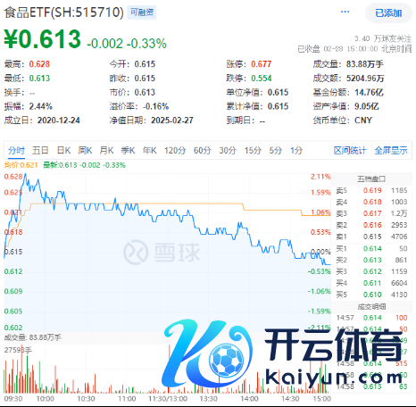 场内热门ETF方面,反应吃喝板块举座走势的食物ETF(515710)全天大部分时期飘红,盘中场内价钱最兴盛幅达到2.11%,但尾盘随市回落,完了收盘,跌0.33%。
