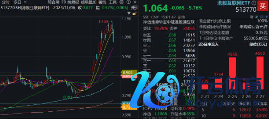 热门ETF方面,重仓港股互联网龙头的港股互联网ETF(513770)全天低开低走,场内价钱收跌5.76%,失守10日线,全天成交额8.87亿元。